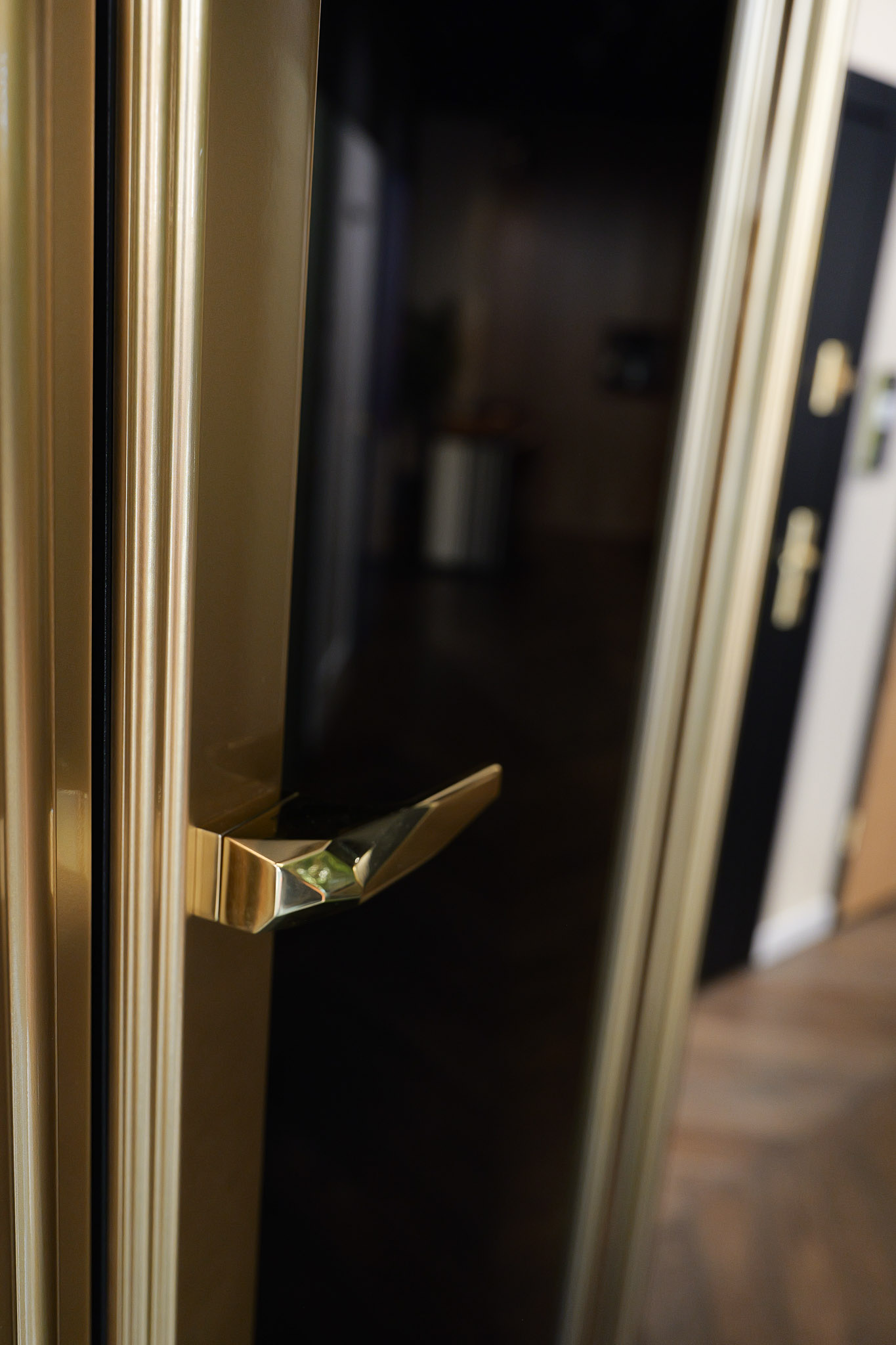 Model Dalia z kolekcji Paprocki & Brzozowski dla INTER DOOR to drzwi, które łączą w sobie klasyczną elegancję z nowoczesnym designem. Charakteryzują się minimalistyczną czernią, która stanowi tło dla wyrazistych złotych akcentów, inspirowanych renesansowymi dziełami sztuki. Złote ramienia harmonijnie współgrają z artystycznymi detalami, tworząc efekt przypominający dzieło sztuki.