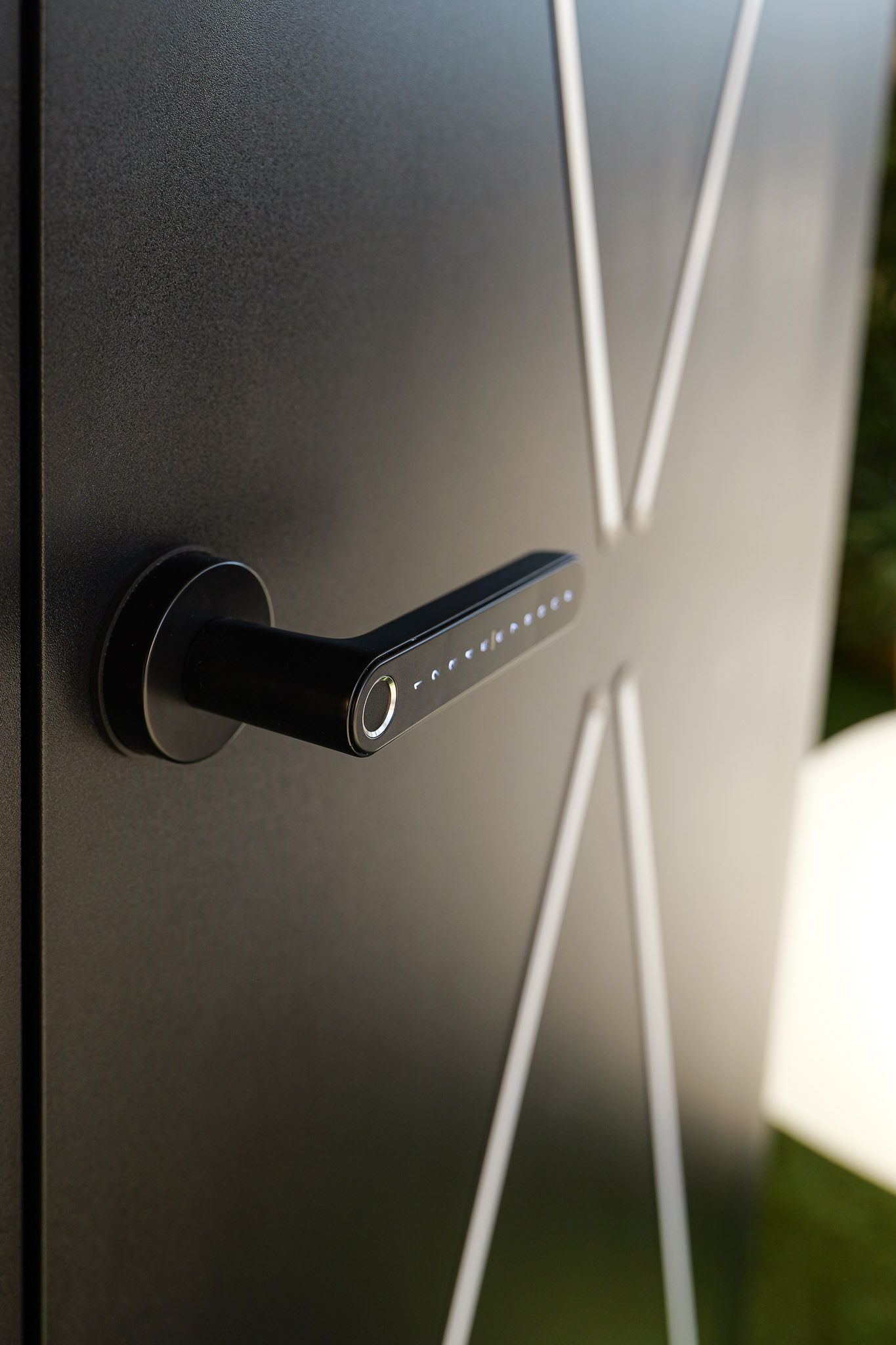 Na naszej ekspozycji prezentujemy model X DOOR, który zachwyca minimalistycznym designem oraz zaawansowanymi rozwiązaniami technologicznymi. Drzwi wykończone w eleganckim Di Moda Nero z czarnymi okuciami to doskonała propozycja do nowoczesnych wnętrz. Dzięki czarnemu kolorowi i neonowemu podświetleniu LED, model świetnie wpisuje się w różne style aranżacji – od gamingowych pokoi, przez biura, aż po kreatywne przestrzenie.